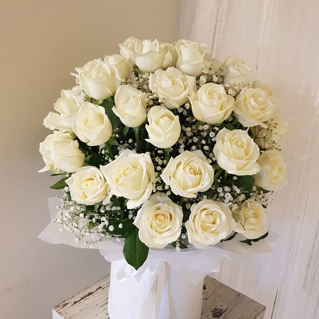 Bring timeless elegance into any space with our Classic White Roses Arrangement.