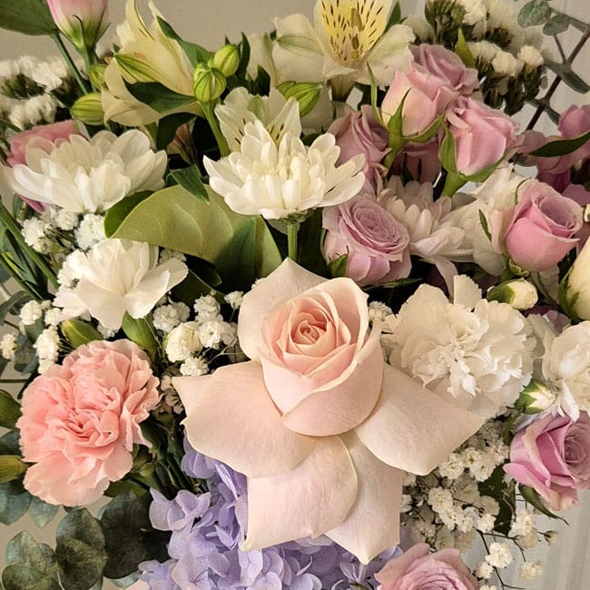 Please note that flowers and designs will vary as our artisan florists work with the freshest, in-season flowers and their own personal inspiration – but you can be sure your bouquet will delight!